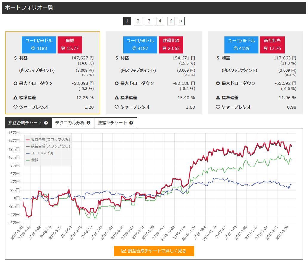 決済したサヤ取りペアの合計損益や勝率なども把握する事が可能です。