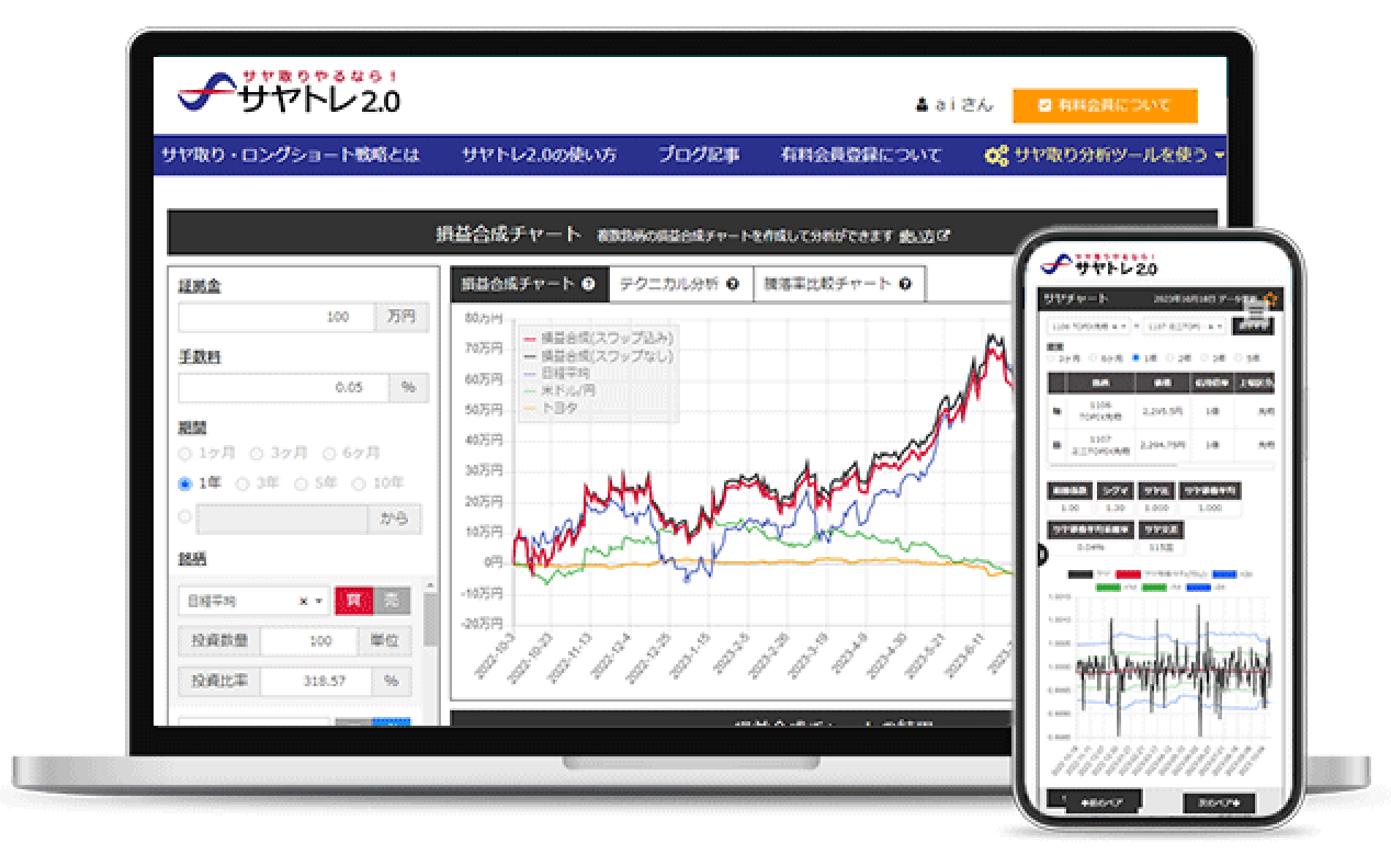 「サヤトレ」は、サヤ取り投資に役立つ投資分析ツールと情報提供を無料で会員に提供しています。